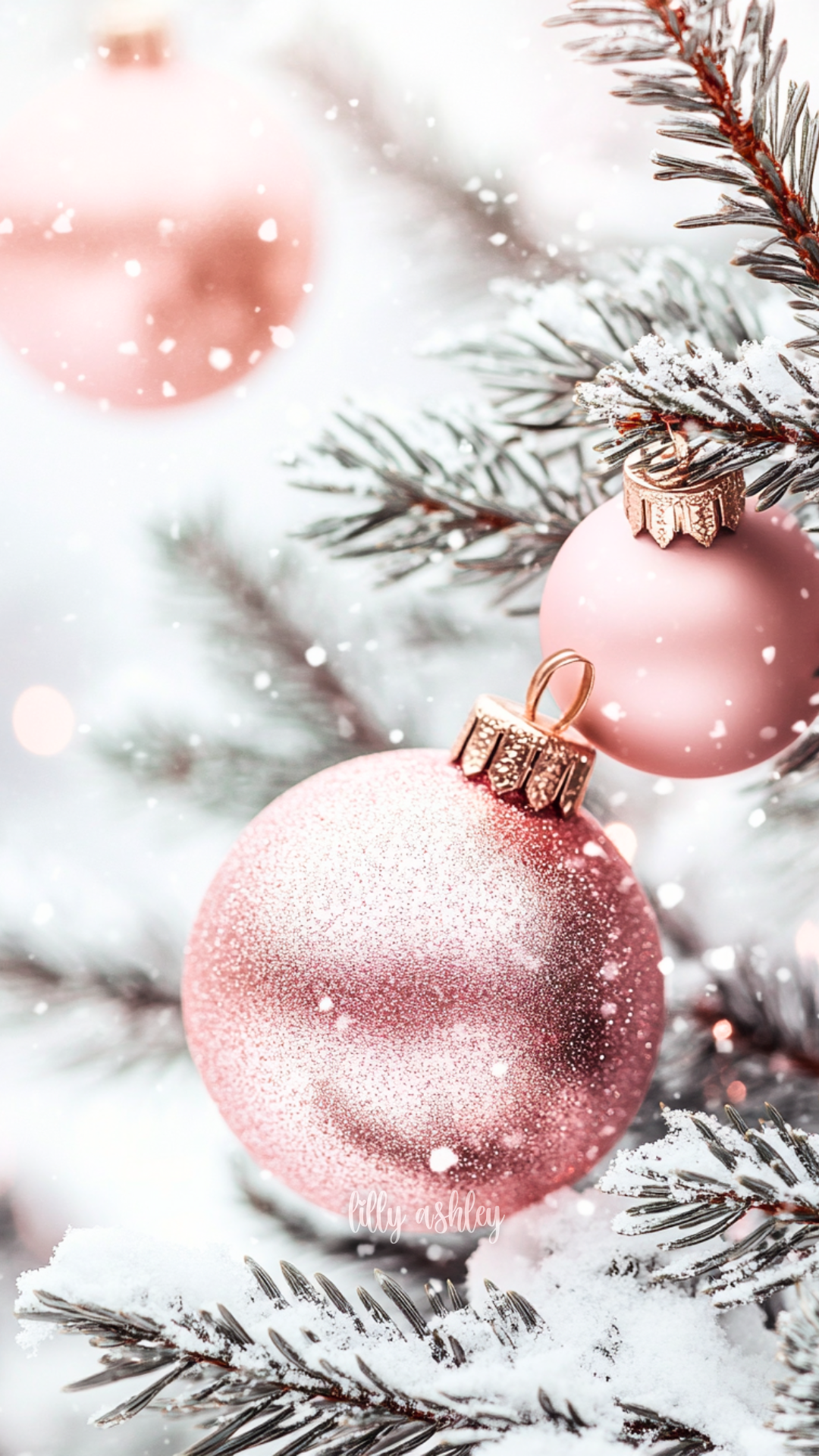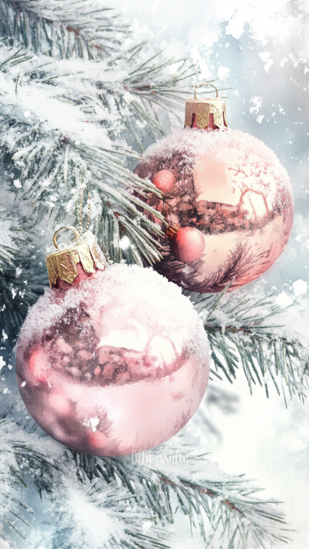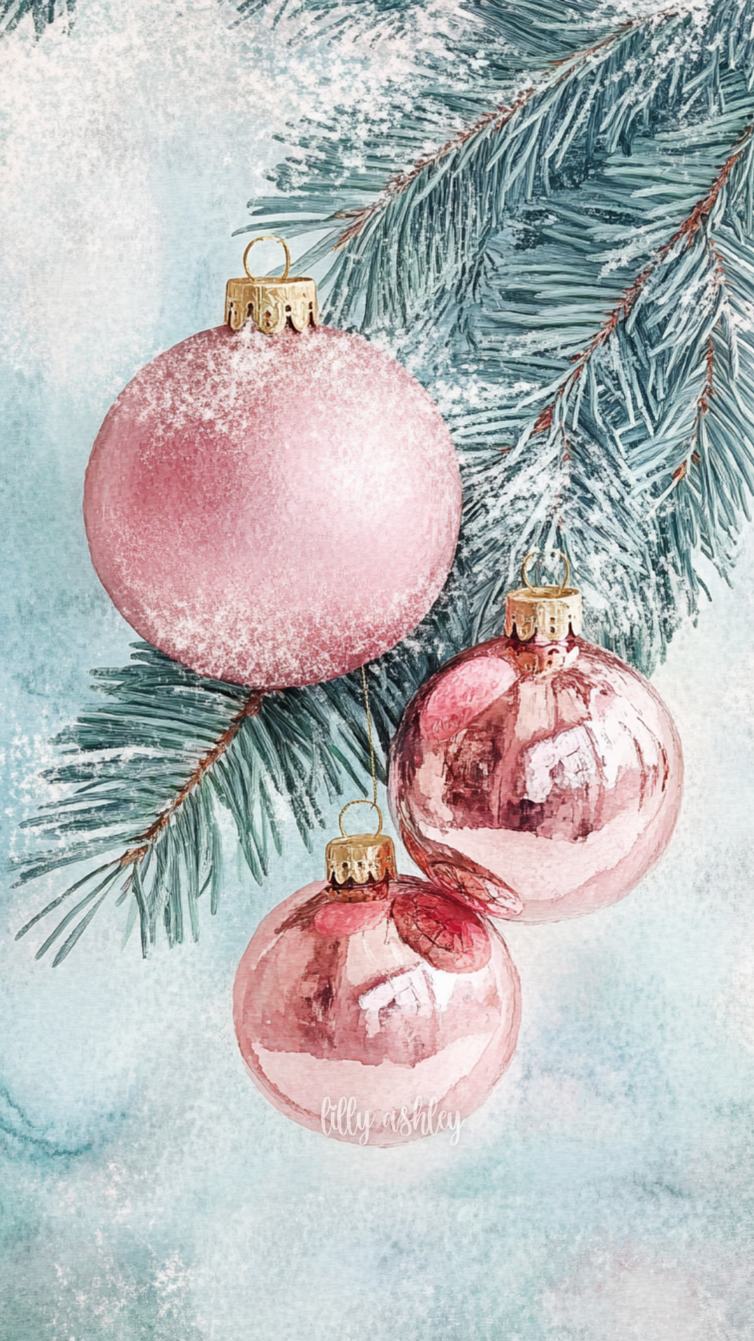 Welcome to another brand-new release Christmas phone wallpaper collection … “Vintage Pink Christmas”! This set features charming vintage pale blue-green evergreen branches, beautifully adorned with elegant blush pink ball ornaments. Perfect for adding a touch of timeless holiday magic to your screen.
