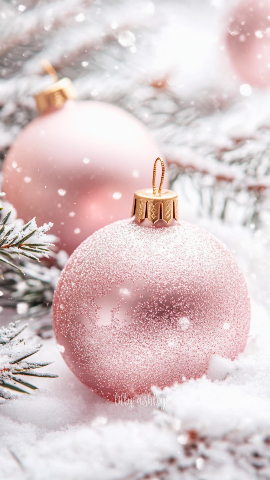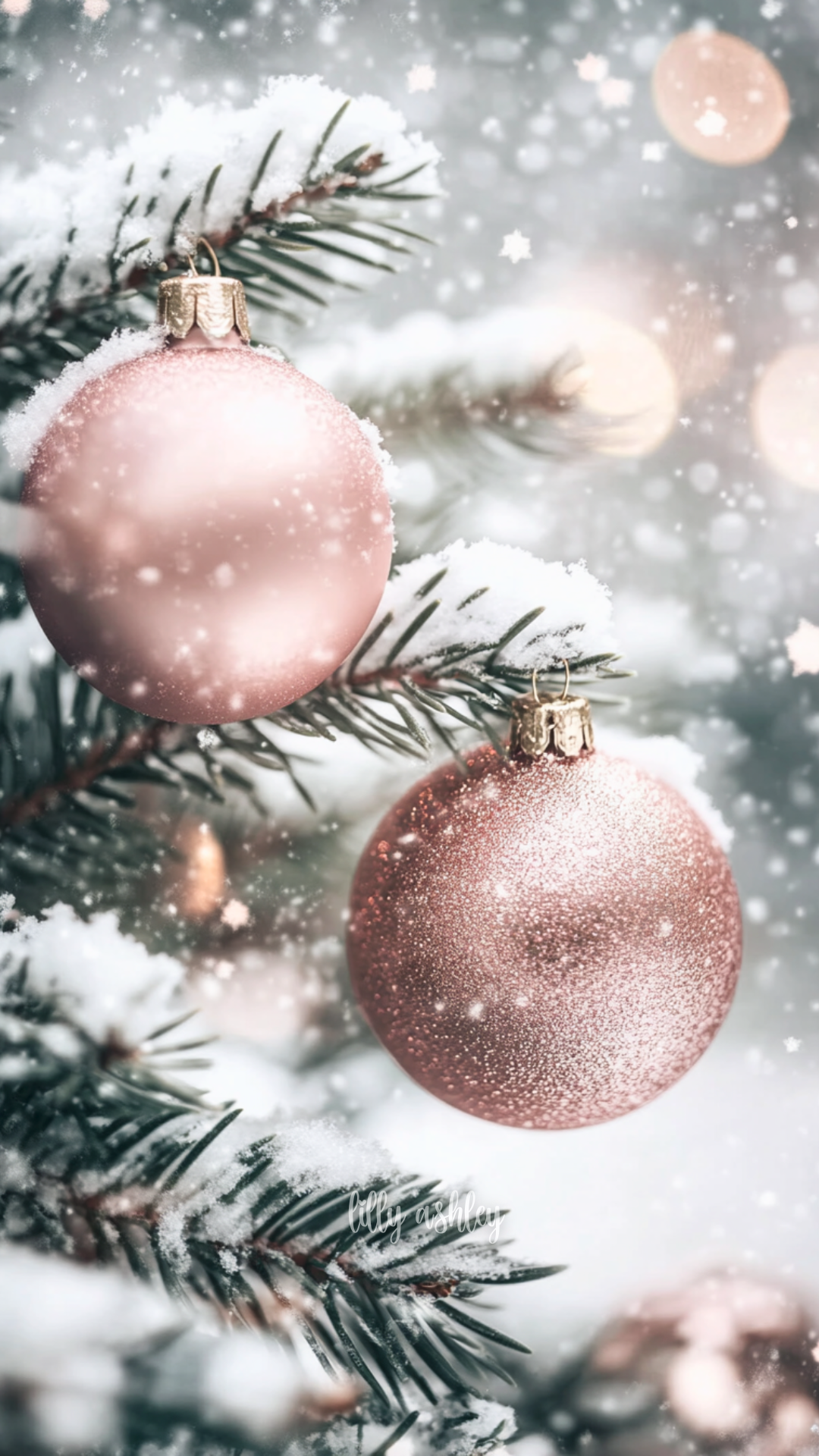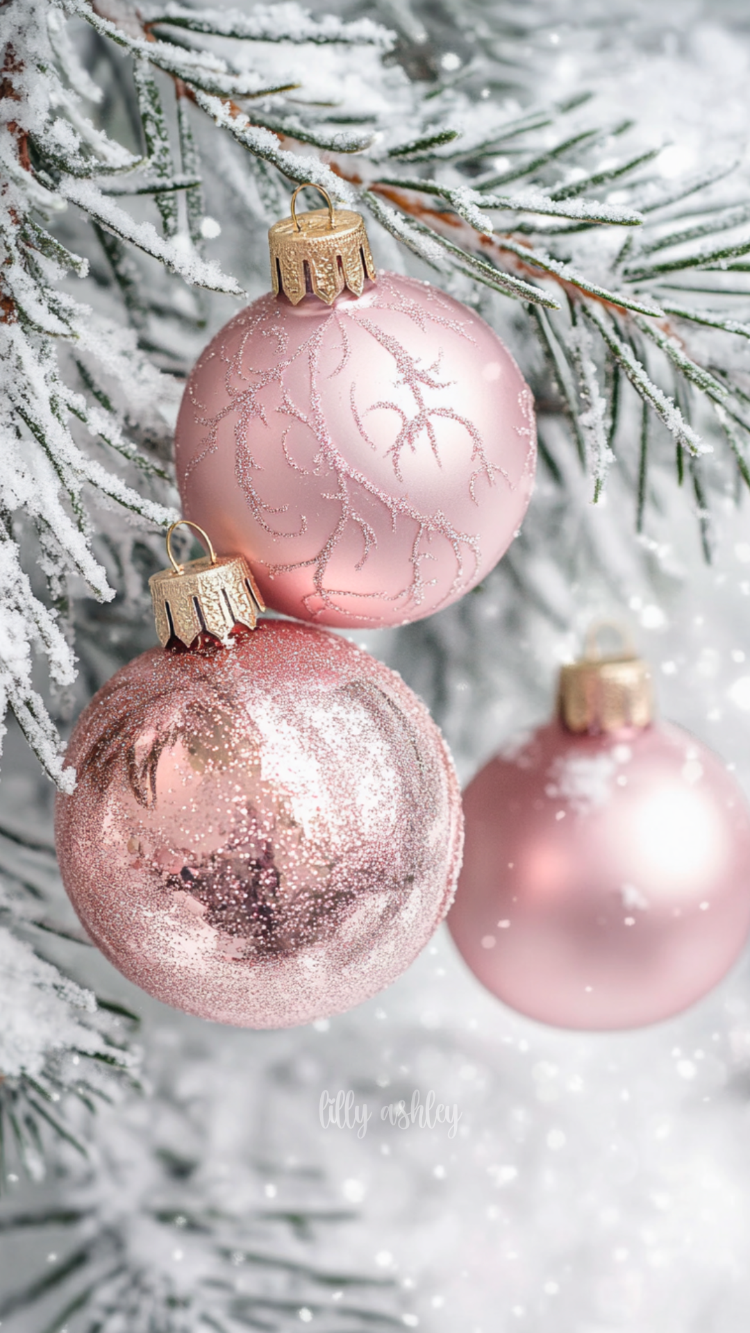 Welcome to another brand-new release Christmas phone wallpaper collection … “Vintage Pink Christmas”! This set features charming vintage pale blue-green evergreen branches, beautifully adorned with elegant blush pink ball ornaments. Perfect for adding a touch of timeless holiday magic to your screen.